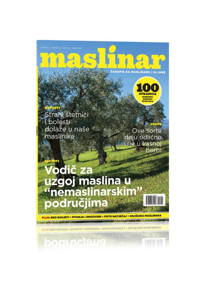 Stigao je najnoviji broj najboljeg maslinarskog časopisa – Maslinar! U 85. broju Maslinara pročitajte stručne tekstove o uzgoju maslina u dosad nemaslinarskim područjima; o stranim štetnicima i bolestima koje stižu u naše maslinike; o sortama koje daju odlično ulje u kasnoj berbi; razgovore s nagrađivanim maslinarima i još mnogo toga!