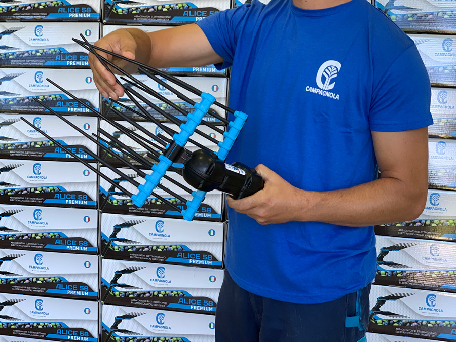 Alice PREMIUM 58 je akumulatorski tresač maslina namijenjen za profesionalnu i osobnu upotrebu branja maslina s dvije brzine rada, senzorom za manju potrošnju baterije i suprotnim eliptičkim pokretima prstiju (patent tvrtke Campagnola Italy). Uz tresač se isporučuje 13 metara kabela za napajanje od poliuretana koji je otporan na udarce i oštećenja.